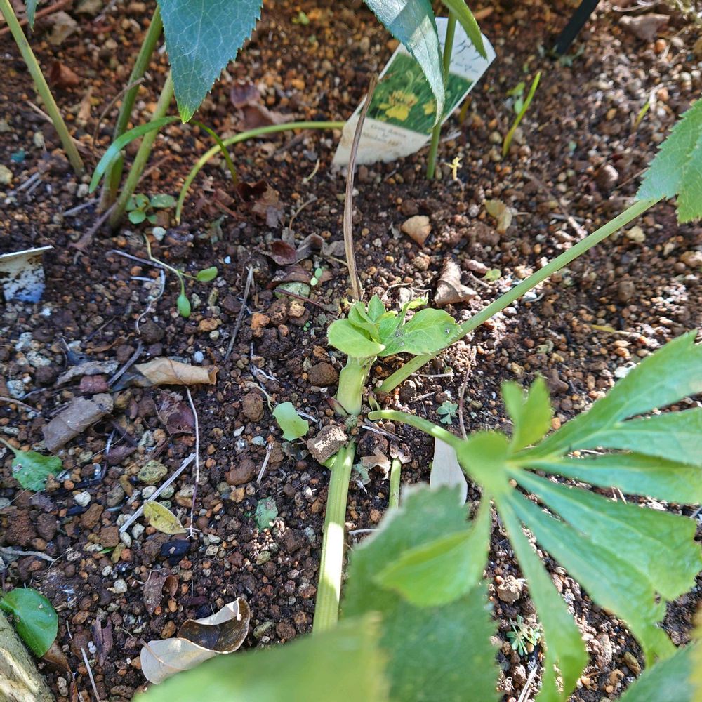 ななちちさんから頂いたクリスマスローズの苗が大きくなって多分蕾かなぁ〜