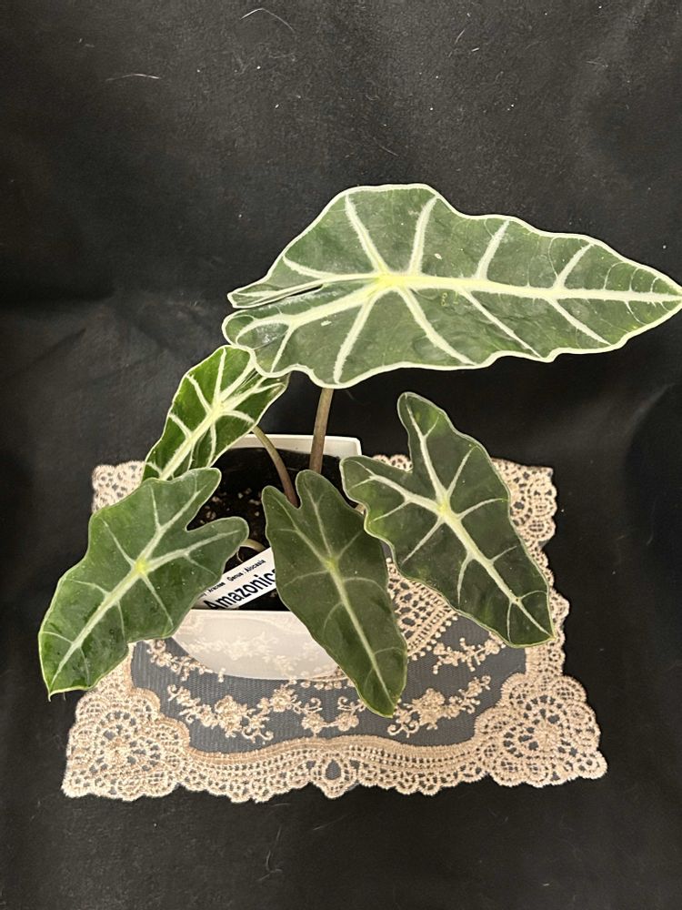 2025.8月に某サイトで購入した【アロカシア チャイ】の 突然変異?なんだろう 購入時、元々有った葉を(1枚目の葉)として、 下から新たな葉が出てきてる状態で到着しました(2枚目の葉) こちらに来て初めて出てきた葉に異変が。。 育て始めて出てきた初めての3枚目、4枚目 (途中から、斑1、斑2、、と続きます) どこまでこの謎の斑入葉が続くのか、 いや止まるのか……記録していきます
