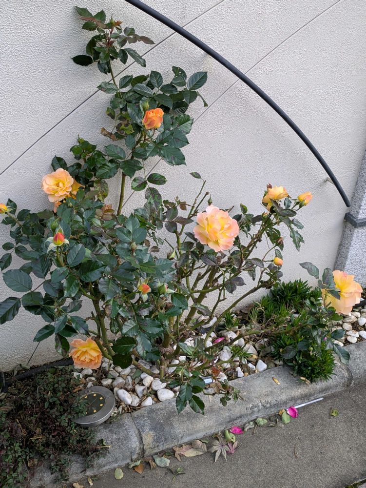 ご近所で咲いていたゴルデルゼ(薔薇)。他の薔薇も咲いていて、散歩が楽しくなります(^^)