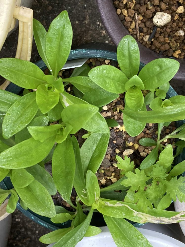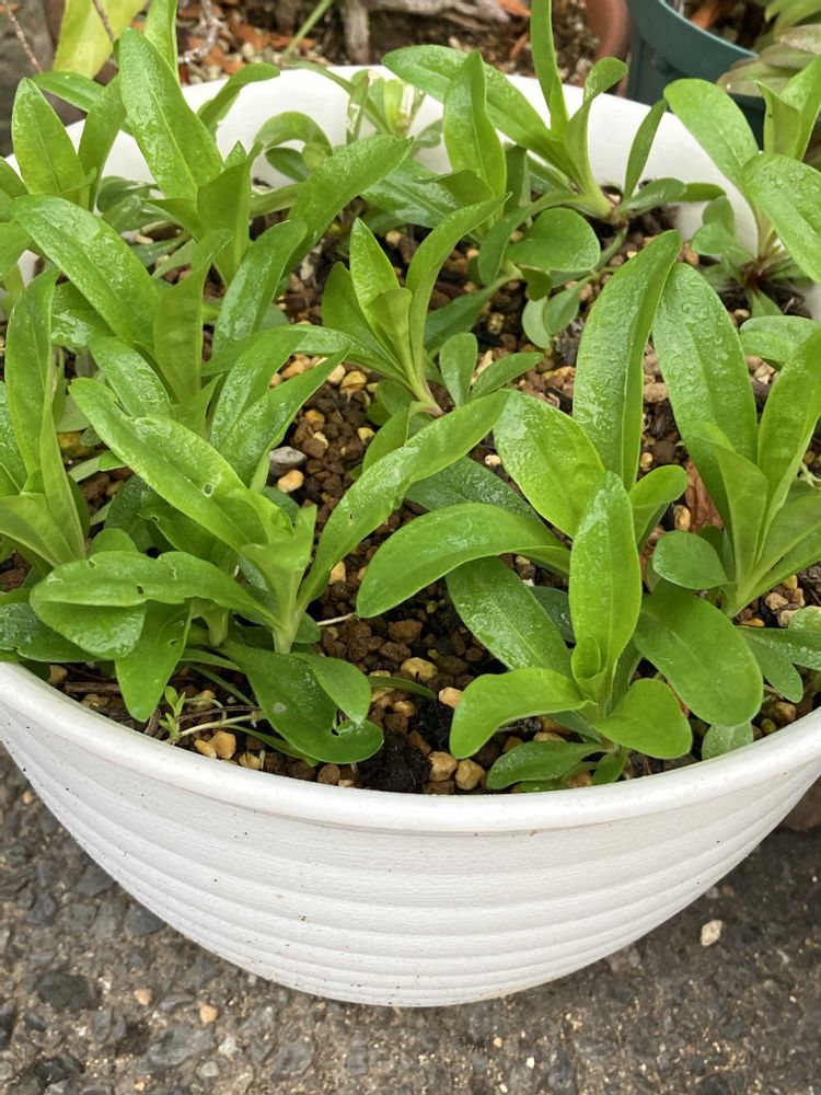 また、用土を再利用しているため、4️⃣何とノースポールが芽を出して来ました右下😅。抜き取るべきなのでしょうが躊躇している間に、ナデシコと同じ大きさになってしまいました😂。