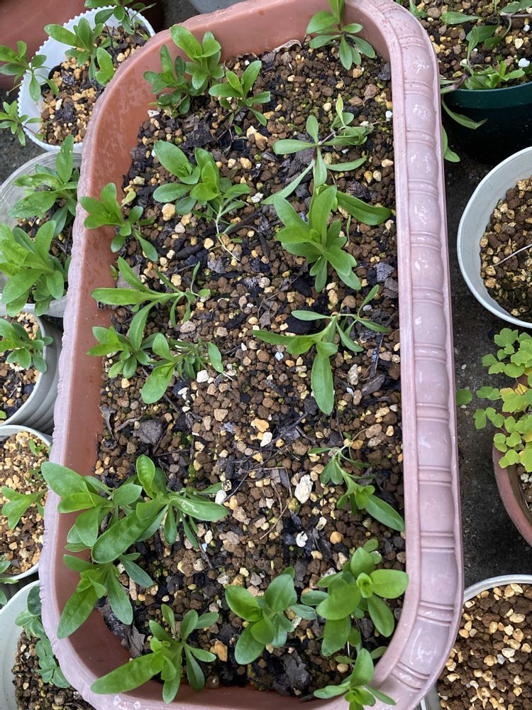 苗を捨てるのか可哀想で沢山生かしたために植え替えた鉢が若干混んで来ました。適正数の倍ほど植えているため再度の植え替えが必要になりそうで怖い😱です。