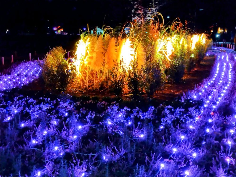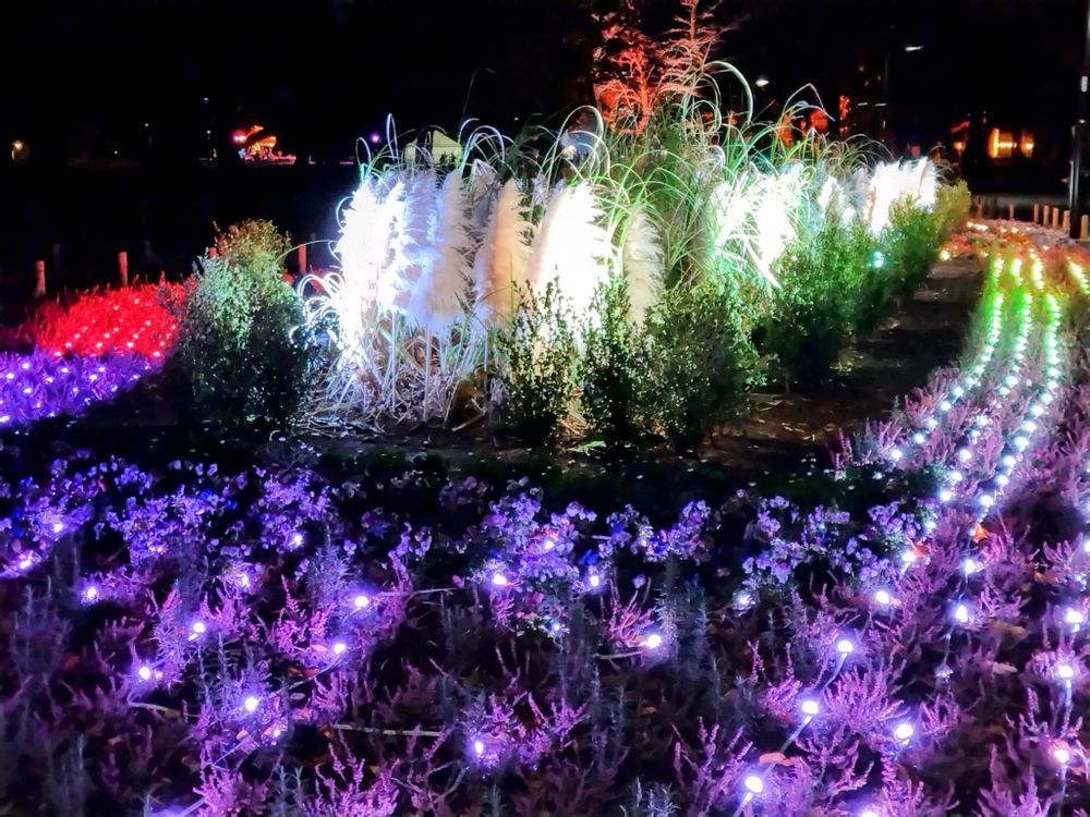 今夜まで行われている小金井公園のライトアップの投稿、今日は宿根草コーナーのライトアップです✨