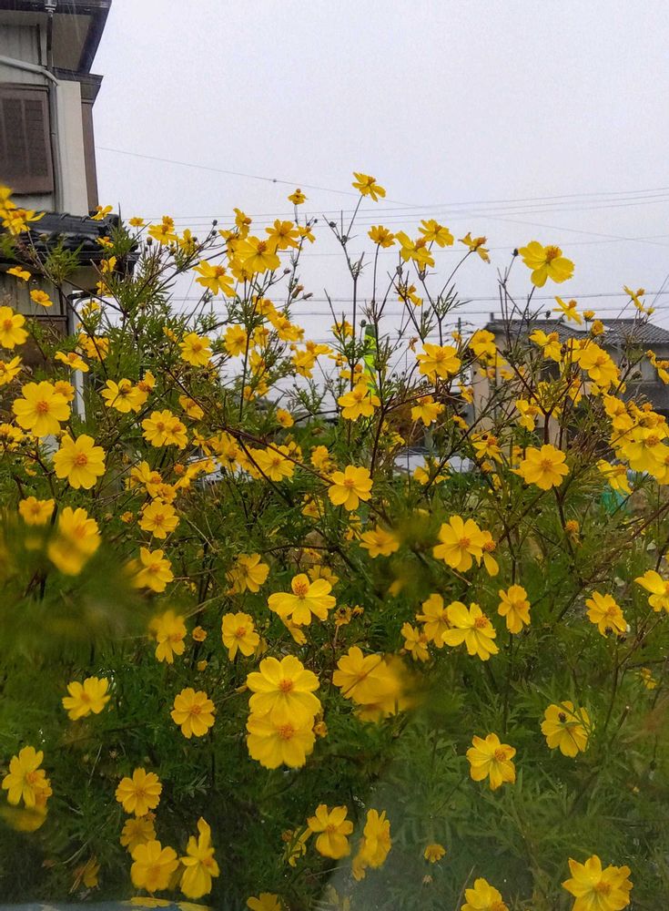 さすがに昨日今日霜が降りるとキバナコスモスはちょっと凍てて茶色くなり半分くらい枯れました💦