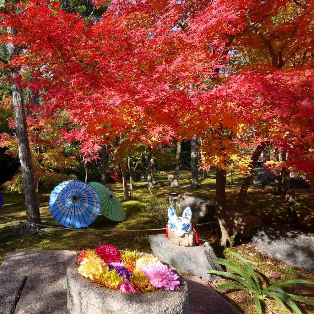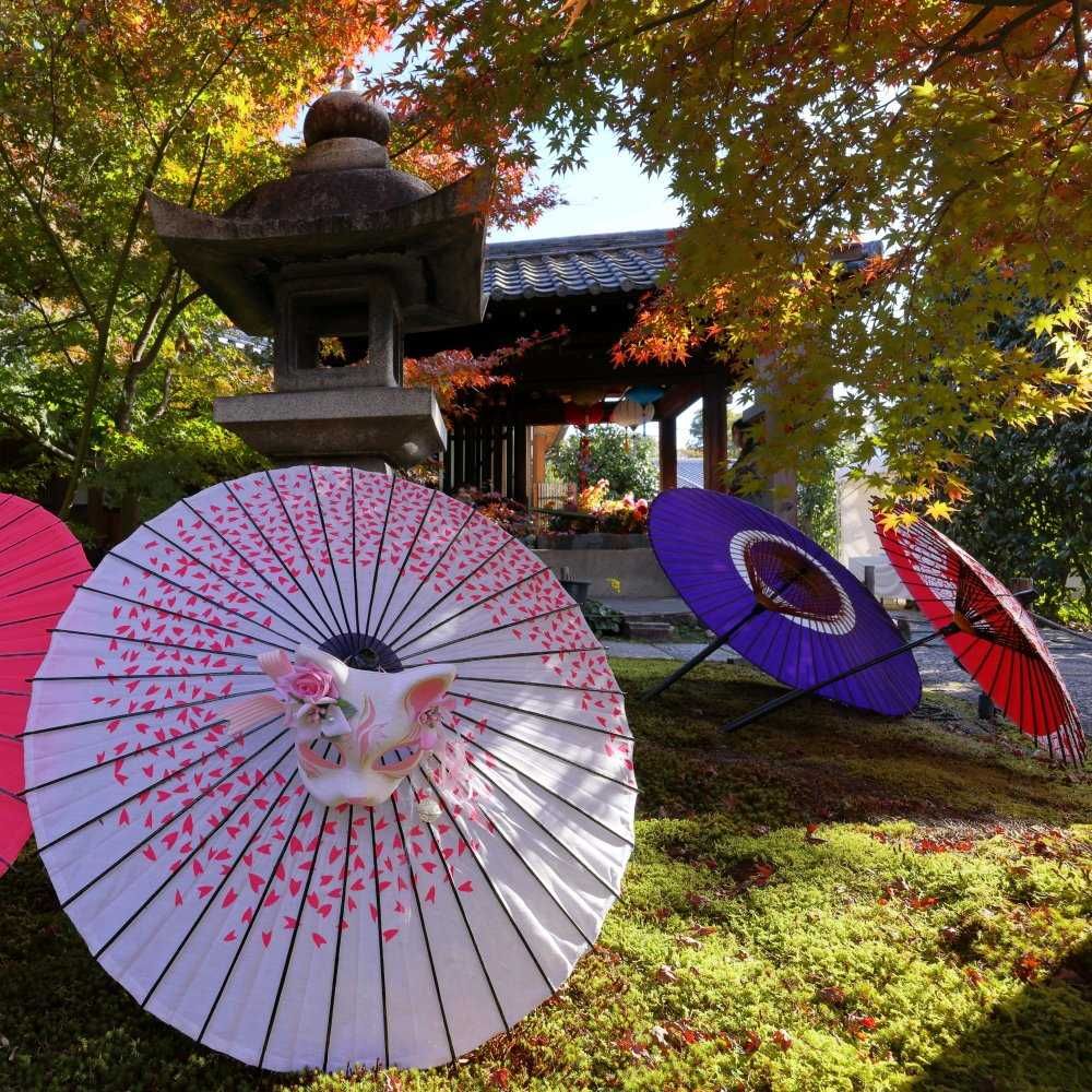紅葉も素敵だけど、和傘の色も素敵ですね🌂