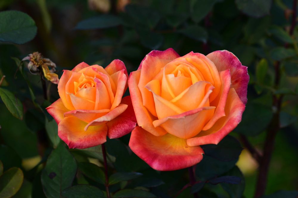 ※濃いオレンジ色で花弁の縁に赤が乗る。