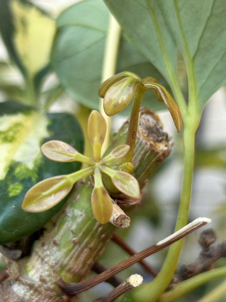 前もカポックお花咲いた事有るけど、こんなに沢山付けたのは初かも?