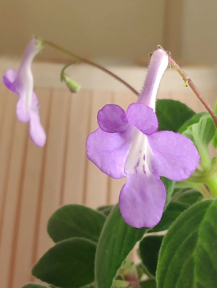 ストレプトカーパスが、だいぶ元気になり、紫色の可愛いお花をつけています。