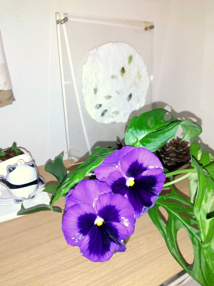 巨大輪のパンジー、紫がキレイです。頭デッカチでたれてきたので室内の切り花にして楽しもう!