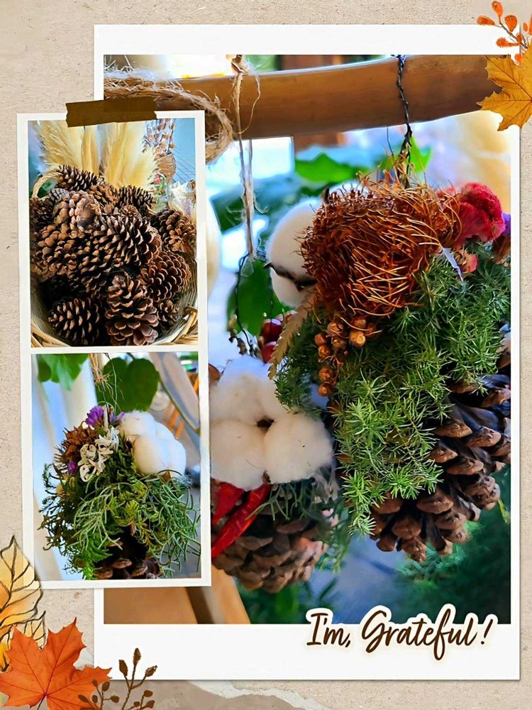 節さんの棉(わた),手作りリース,大きな松ぼっくりの投稿画像