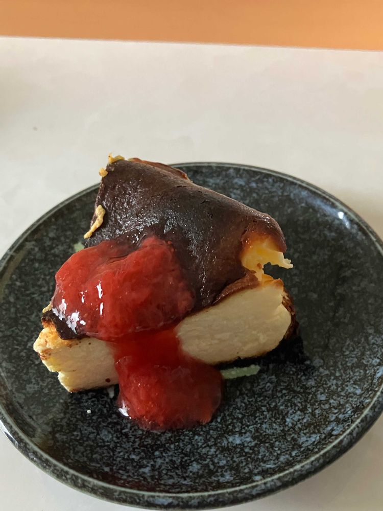 ②バスクチーズを焼きました。楽なりいちごのジャムを添えて🍓