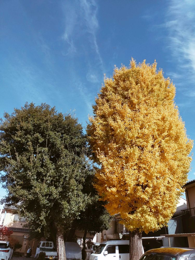 3枚目のイチョウは、とても綺麗な姿だったので、隣の緑の木に合わせるように剪定されてるのかな…と思いました😆