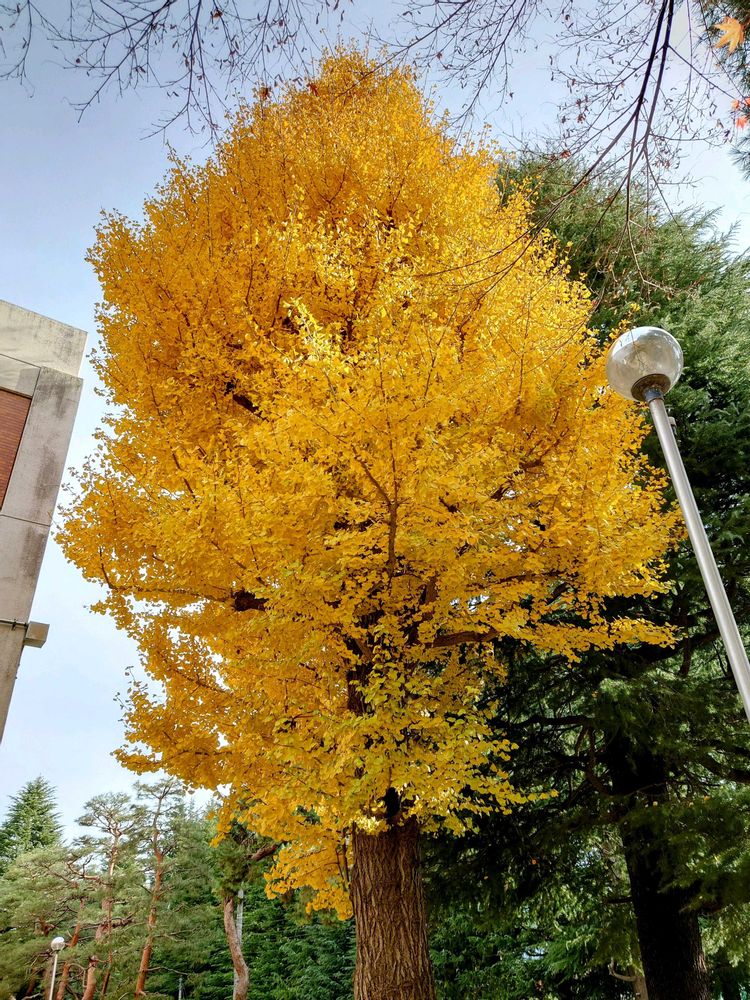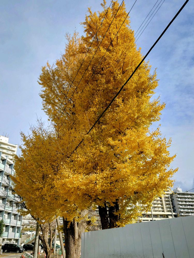 今日の午前、市内を散歩途中に見かけたイチョウ。