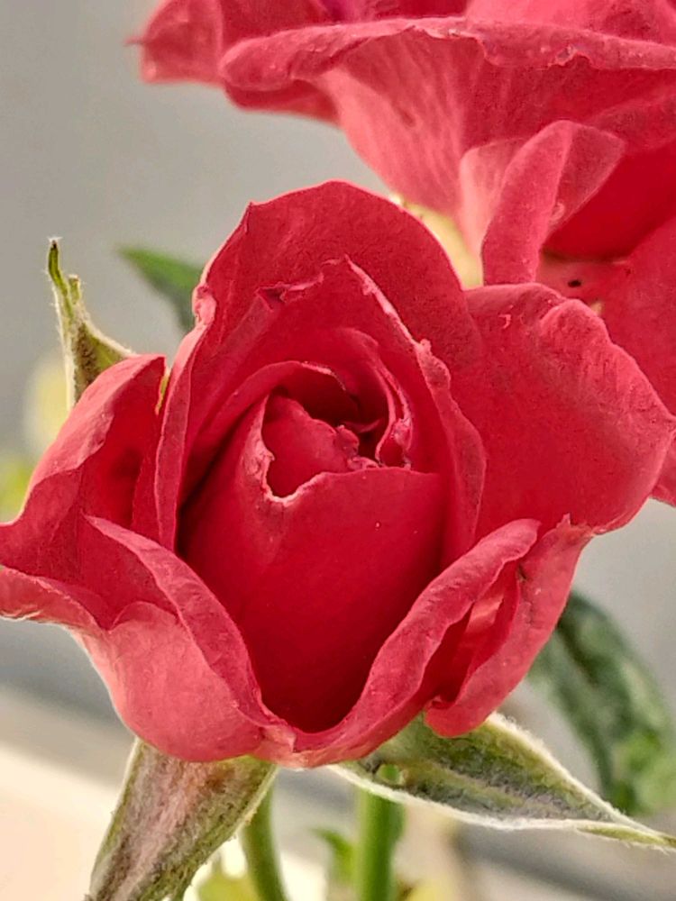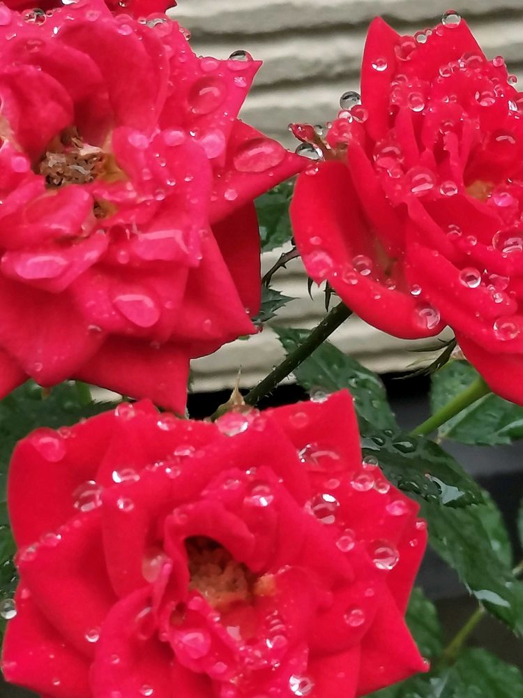 雨に濡れた薔薇、咲き始めの薔薇、可愛い蕾の薔薇。