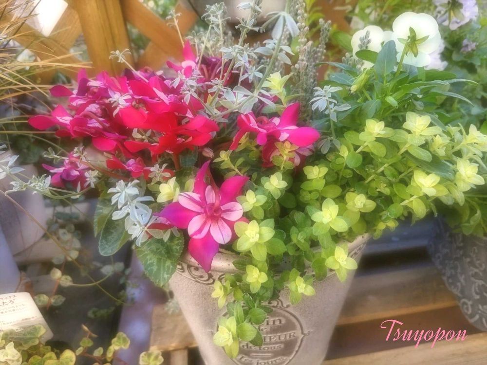 一ヶ月前に作ったミニシクラメン・ジックスさんの寄せ植え🌷🌸🌺🌻