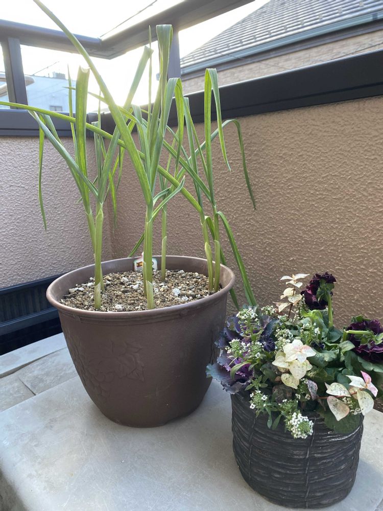 このまま育てば、でかい🧄が…( ̄∇ ̄)