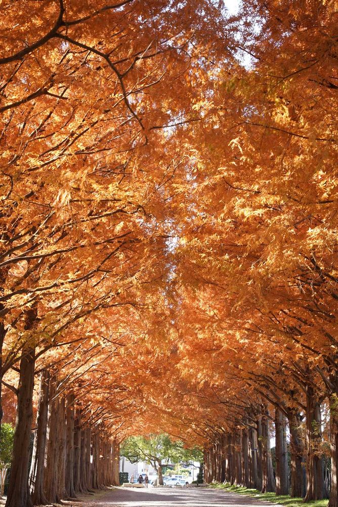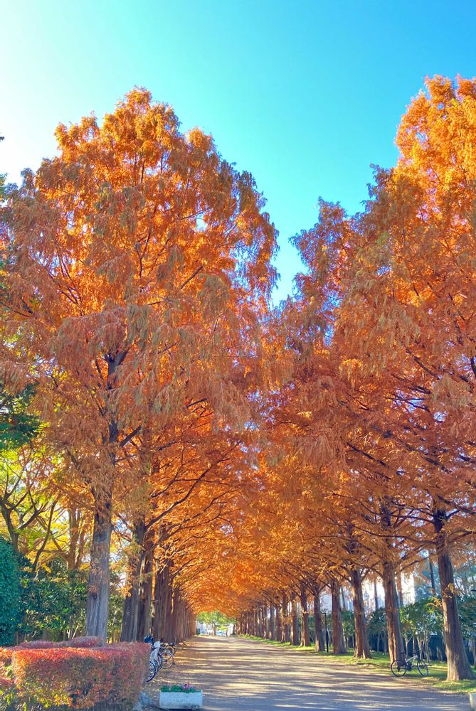 新緑の時も、紅葉の時も素敵なメタセコイア並木です😊