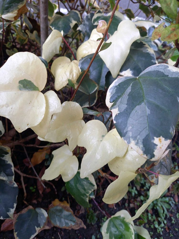 真っ白な葉っぱ見た時はびっくりしましたが…その後何ヶ所かで同じオカメヅタを見ましたよ🌿