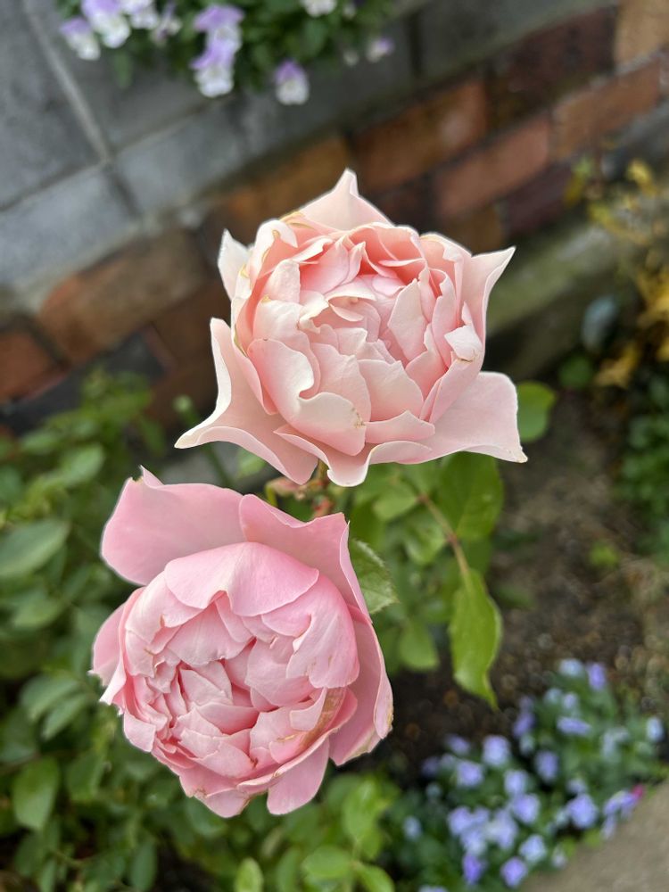 2つ並んで咲いてます🌹本当上品な形と色合いのローブデコルテ🌹😍タグの写真その物です😆なんだか嬉しい💓