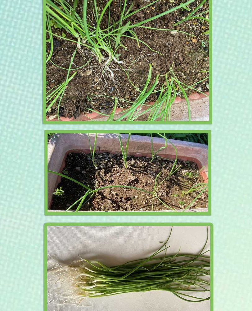 ❸玉ねぎの間引きしようとして途中で🤳⬆️間引き後のは食べられるか調べて大丈夫そうなのでチャーハンに入れて食べました😋