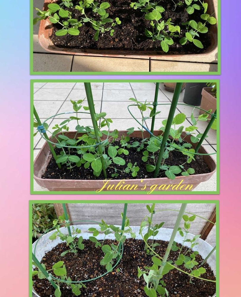 ❹花友さんからツタンカーメンの種を頂き プランターに蒔いてでてきて 伸びてきたので 支柱を立てました😉