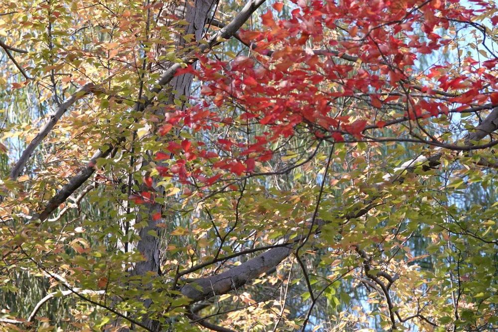 一方は真っ紅になり、もう一方は黄葉のように見えます。これは隣り合う別のトウカエデです。