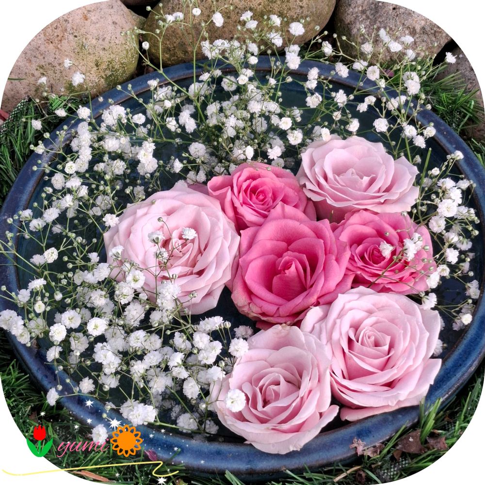 花瓶に飾り、花手水にしました!