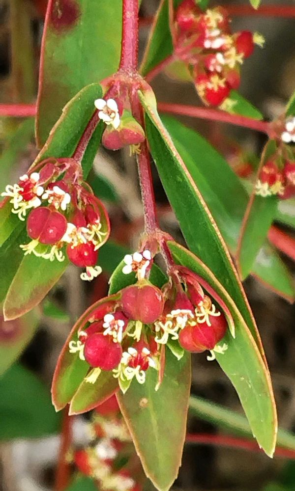 オオニシキソウのふっくら子房が真っ赤に色付きました小さな白い花が可愛いですね