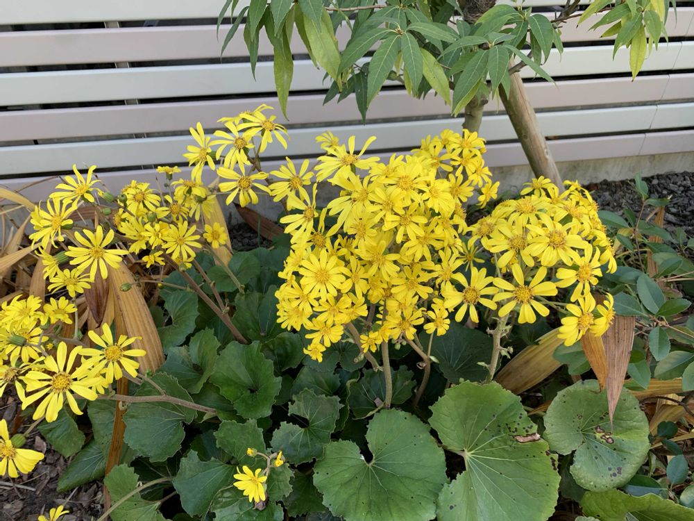 ①お隣のマンションの植え込みのツワブキ🌼🌼🌼🌼🌼