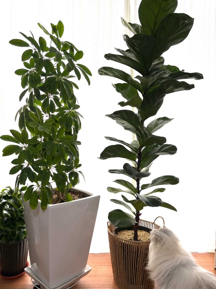 ウンベラータとカシワバゴムはリビングにあるため 特に元気そうですが