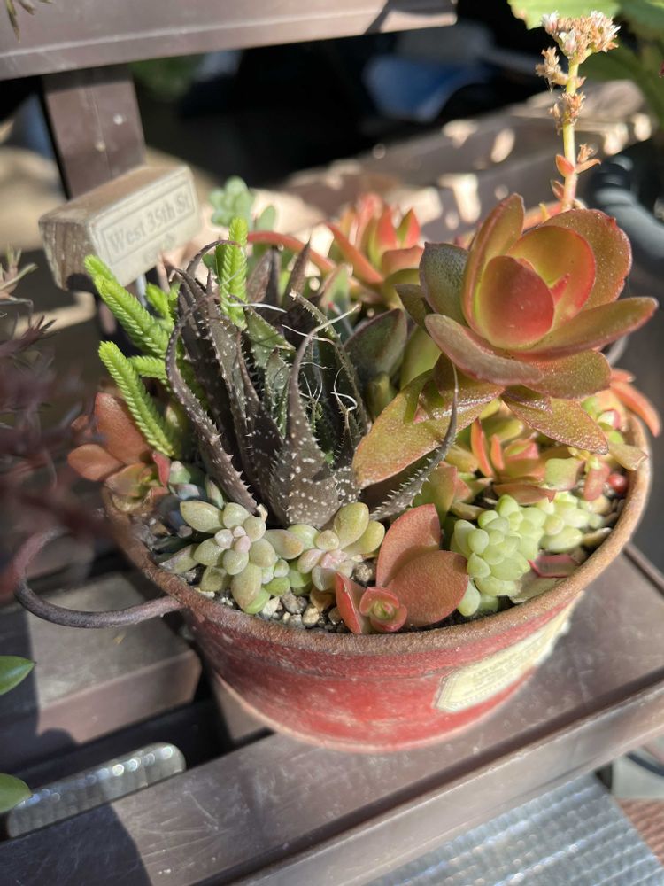赤のブリキ鉢の寄せ植え❤️