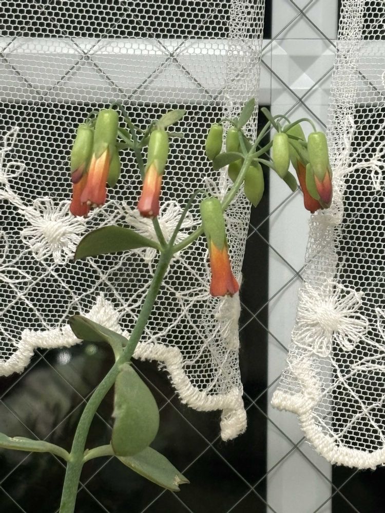 うちの八重咲きカランコエにも小さい蕾があるけど、色もついてないです。