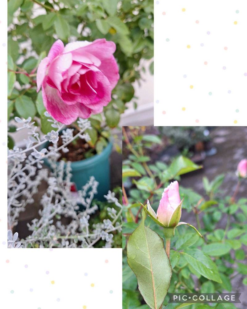 2枚目左はブリリアント・ピンク・アイスバーグなのでピンクなのですが、右は白いアイスバーグなんだけど、蕾がピンクになってビックリしてます😲