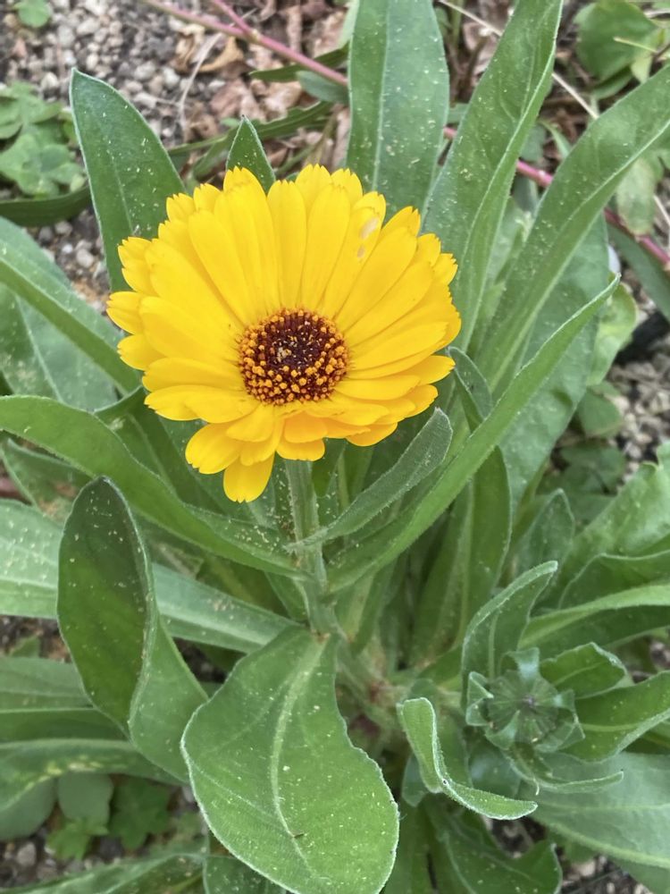 ①こぼれ種から咲いたキンセンカ