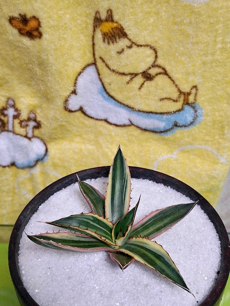 ①ムーミン柄のタオルをバックに、五色万代の子株です❣️
