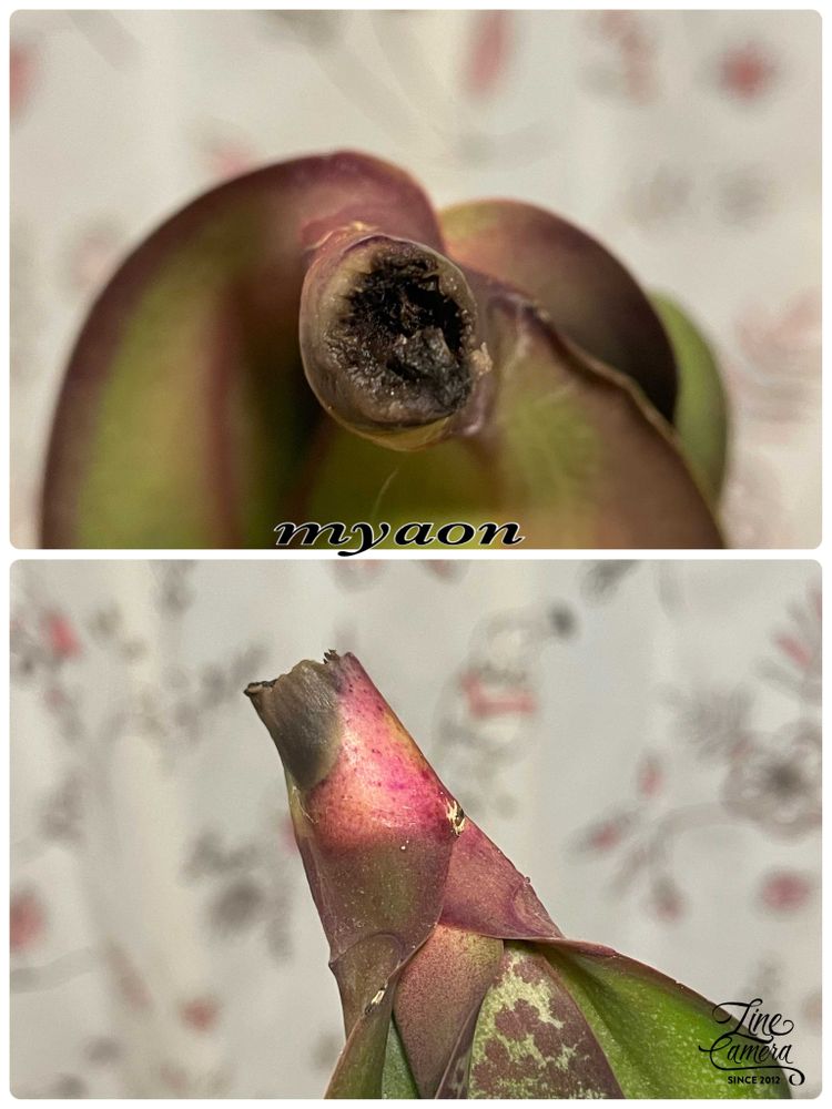 4枚目:ファレノプシス シレリアナ なんとなーく調子悪いのかな~と思っていたら…ありゃ〜コレはフザリウムかなぁ…アカンな、アカン、株元をカットしてダコニール塗り塗りしたけれどどうなる事やら…