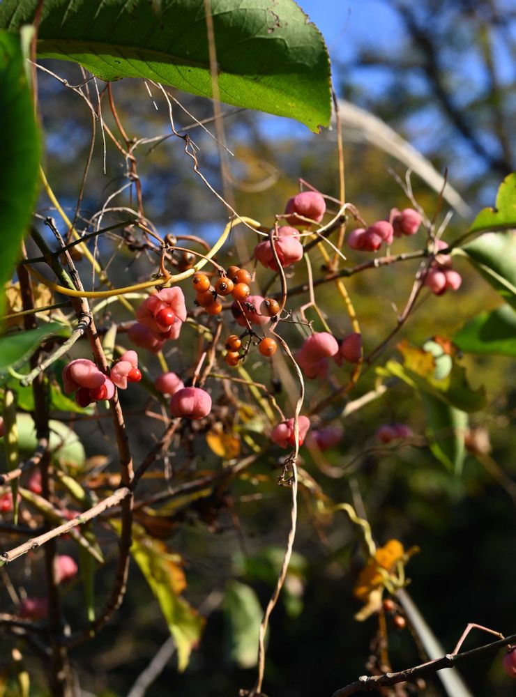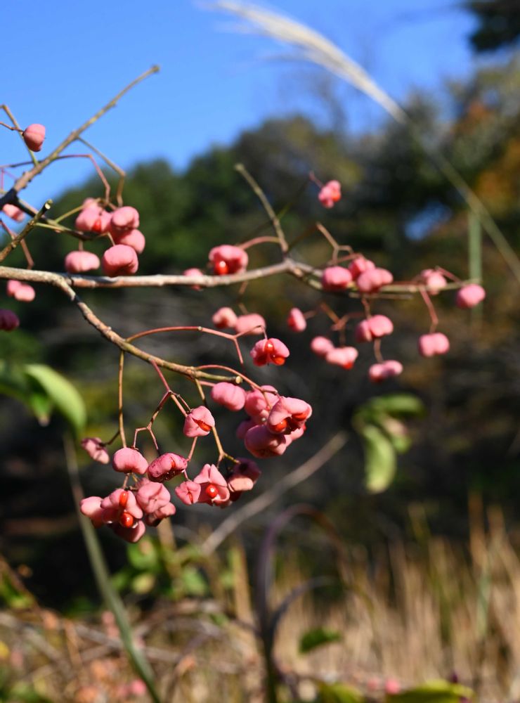 竜爪山にもマユミがあるのですが今年は全く実をつけなかったようです。過去には全体が真っ赤に見えるほどの年もあったりしました。気候のせいか、サイクルがあるのかわかりませんが年によって随分違うようですね😆