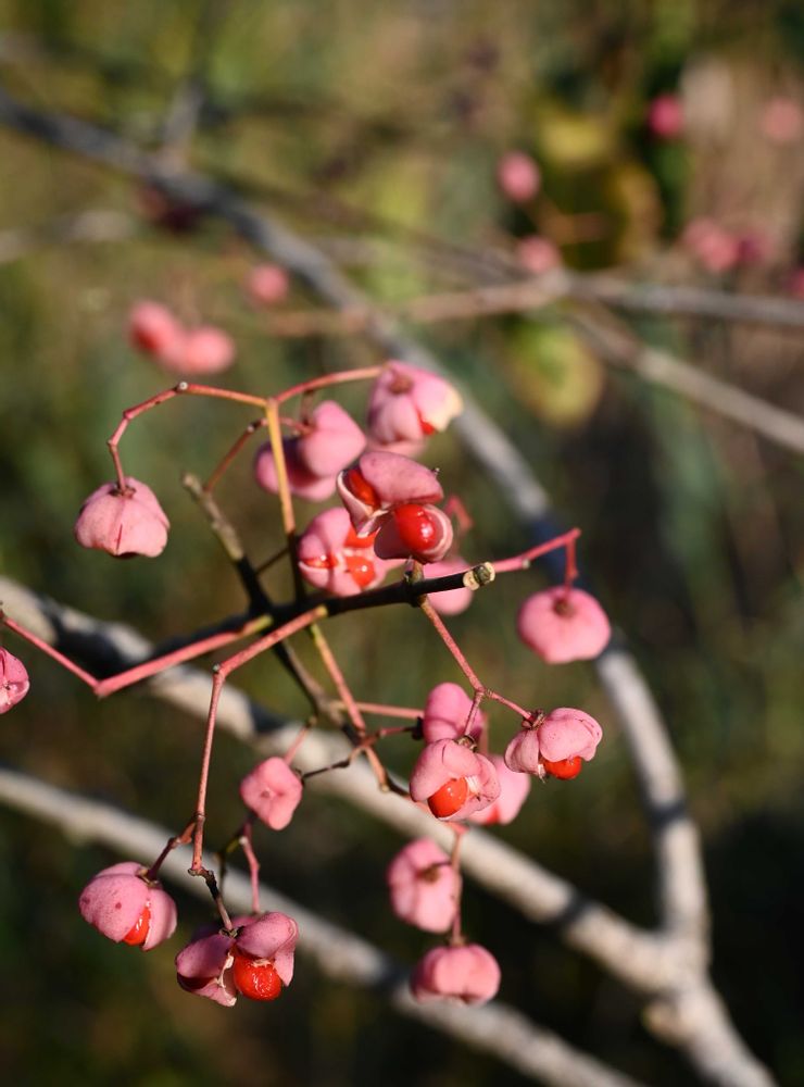 先日、マユミの投稿をしましたが、赤い種子が顔を出している子に出会えたので、リベンジです🩷❤️🩷