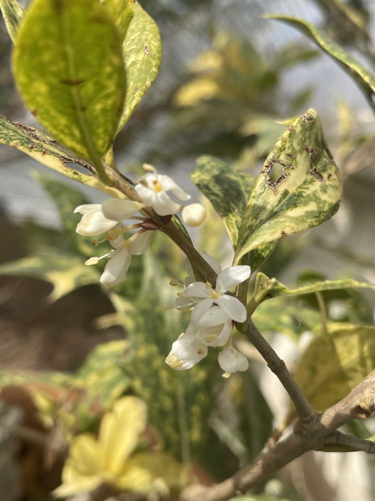 4.鉢植えの斑入り葉柊気づいたら花がとてもよいかおり𓂃 𓈒𓏸