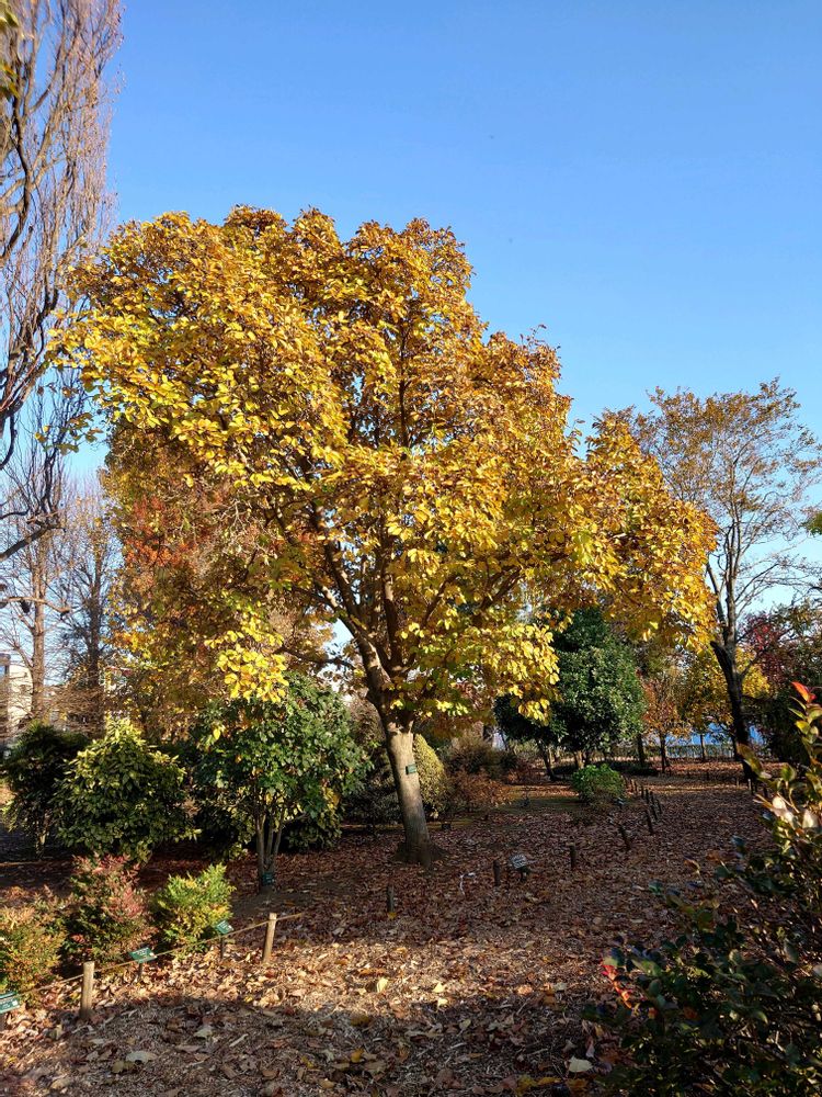 こちらはハクモクレンの大木🙄 花の時期も見ごたえがありますが、紅葉(黄葉)の時期もなかなかですね🙆(農業試験場内にて)