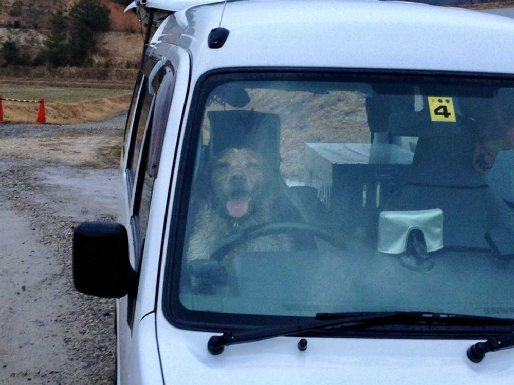 さん😀荷台のゲージに入ってくれてると思ったら、運転席で待ってました😅ブルブルしたようでフロントガラスも泥がはねてました🤣💦