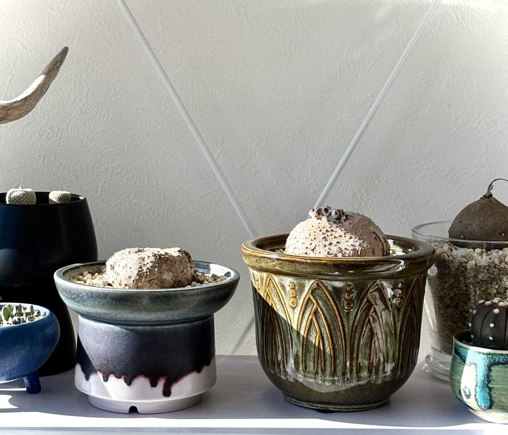 リビングや庭で植物を育てて、グリーンズに癒されてます✨ 一般的な観葉植物、シダ類、塊根、ドライガーデン、多肉、果樹、興味の赴くまま気ままに試行錯誤中です。 陶器、陶芸、植木鉢も好きで、鉢合わせも楽しんでます。 最近、憧れていた盆栽を始めるコトができて嬉しいです。 ただ、異形好きなので、個性的な姿になりそうです(*´艸`)
