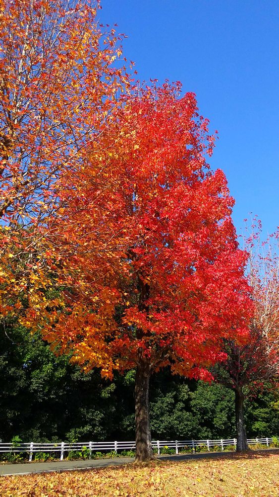 平地でも色々な木々が紅くなっています。出かけた浜松で見たタイワンフウ?真っ赤です。🤗✌️🐶