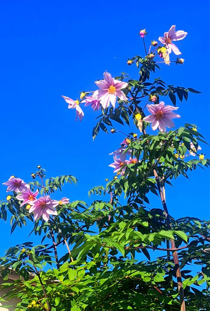 k57 さんの皇帝ダリア🩷見事な青空に美しく🩷