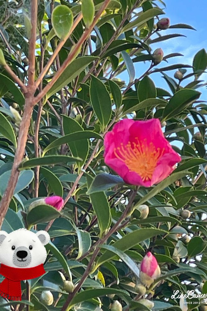 No.713 散歩道の植物とお散歩ちゃん12月①2025/1218白侘助、ビワ、オキザリスバーシカラー・・・
