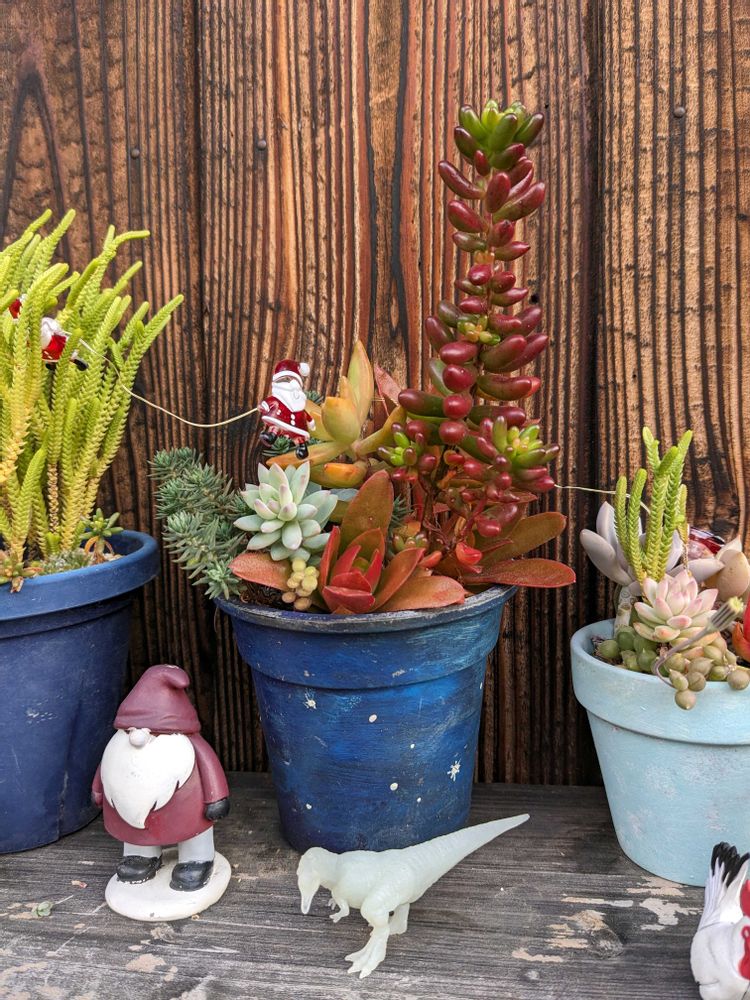 寄せ植えの虹の玉が赤く紅葉してきました。クリスマスカラーみたいでかわいい。