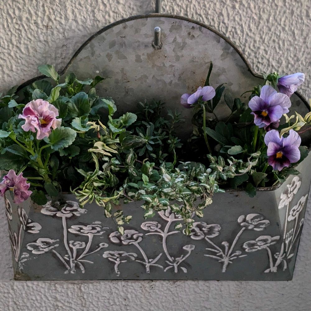 ちょっと淋しい感じですが真ん中のベロニカやイベリスが咲くと素敵な寄せ植えが完成❣️予定😆