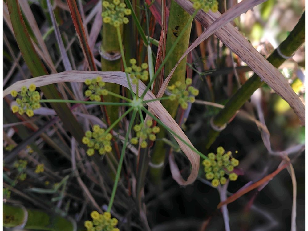 2️⃣3️⃣フェンネルの枯れたお花が背丈より高いところにありました。足元には背の低いお花が咲いていました🧡🌿
