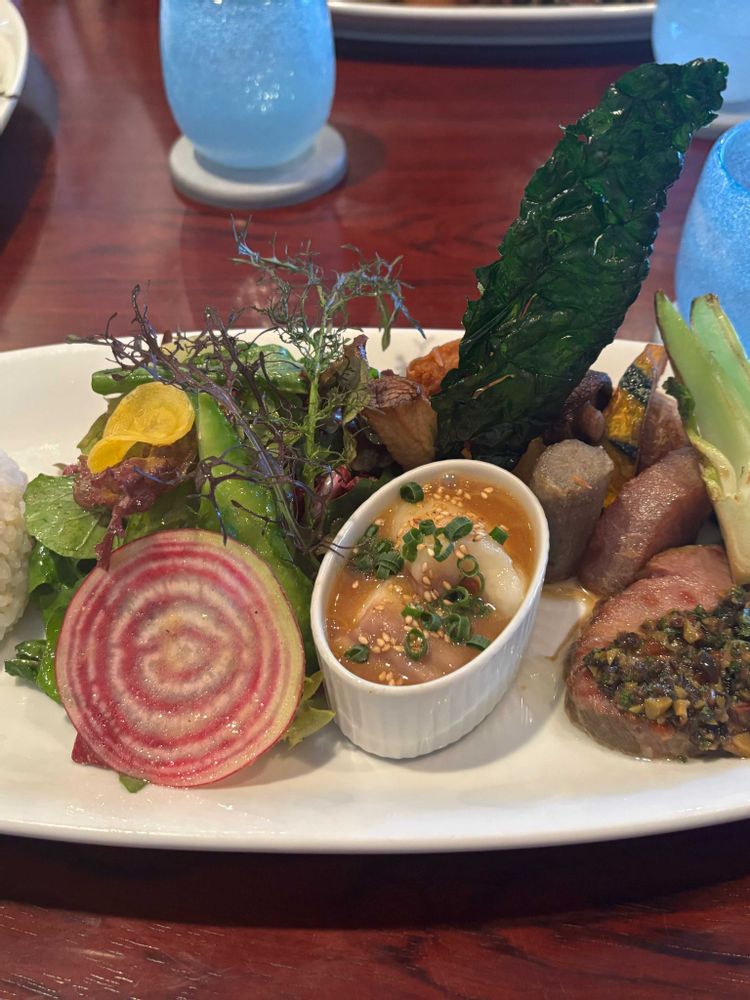 カフェメシプーチ☕️という名前で30分位かかりますと言われましたが3人でおしゃべりしてたらあっという間、プレートの中どれも凝っていて美味しくてデザートのケーキとコーヒー入れて2300円、お手頃で