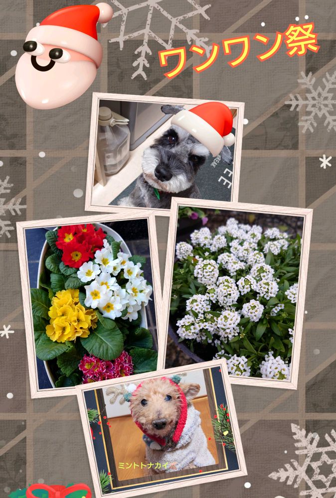 おはようございます🎵庭のアリッサムはモリモリ🩷🩷去年はミントにトナカイになってもらいました🎄懐かしいな💦寒くても元気元気なコタローとお空ミントでワンワン祭りに参加します🤗