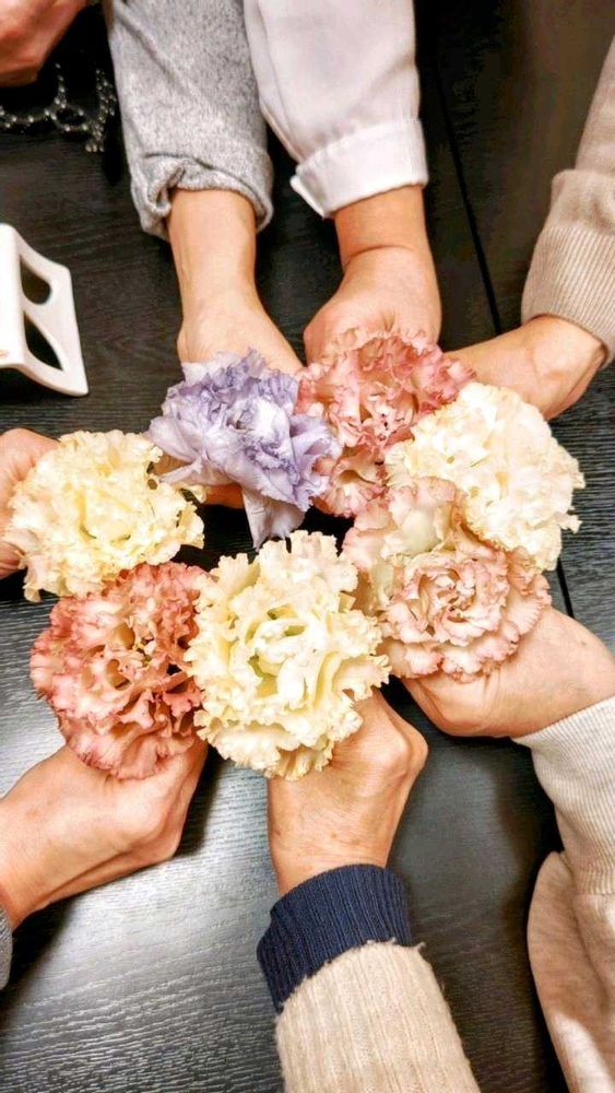 乾杯の前にみんなで自分の席に置かれた花で📱💥しました🤣‼️